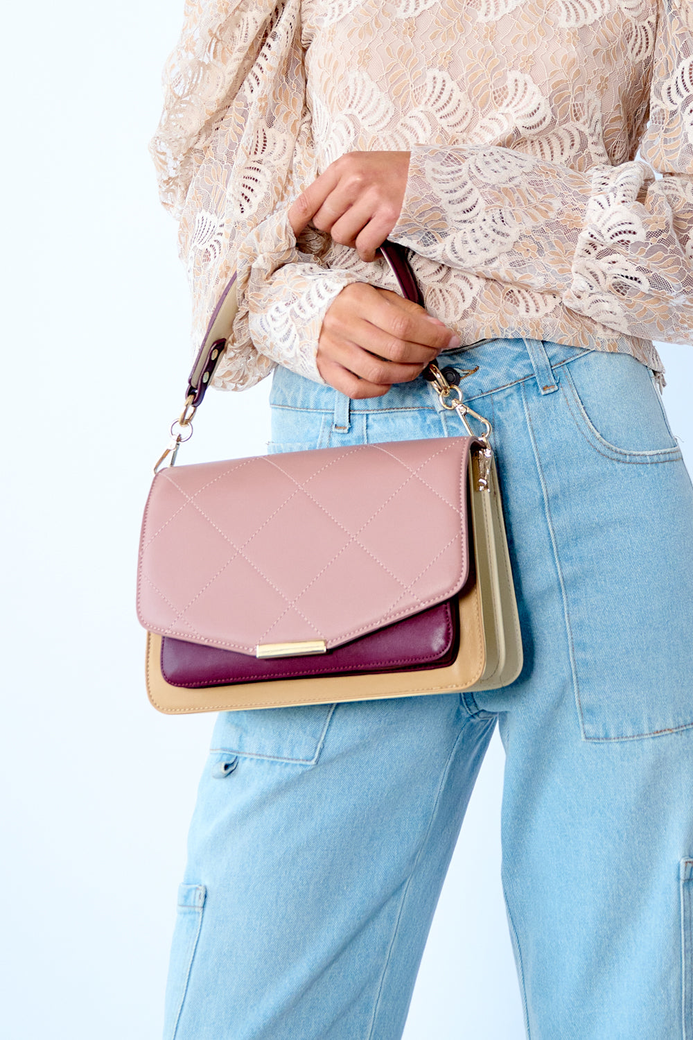 Stylenavn: Blanca Multi Compartment Bag Blush/Camel/Plum Mix