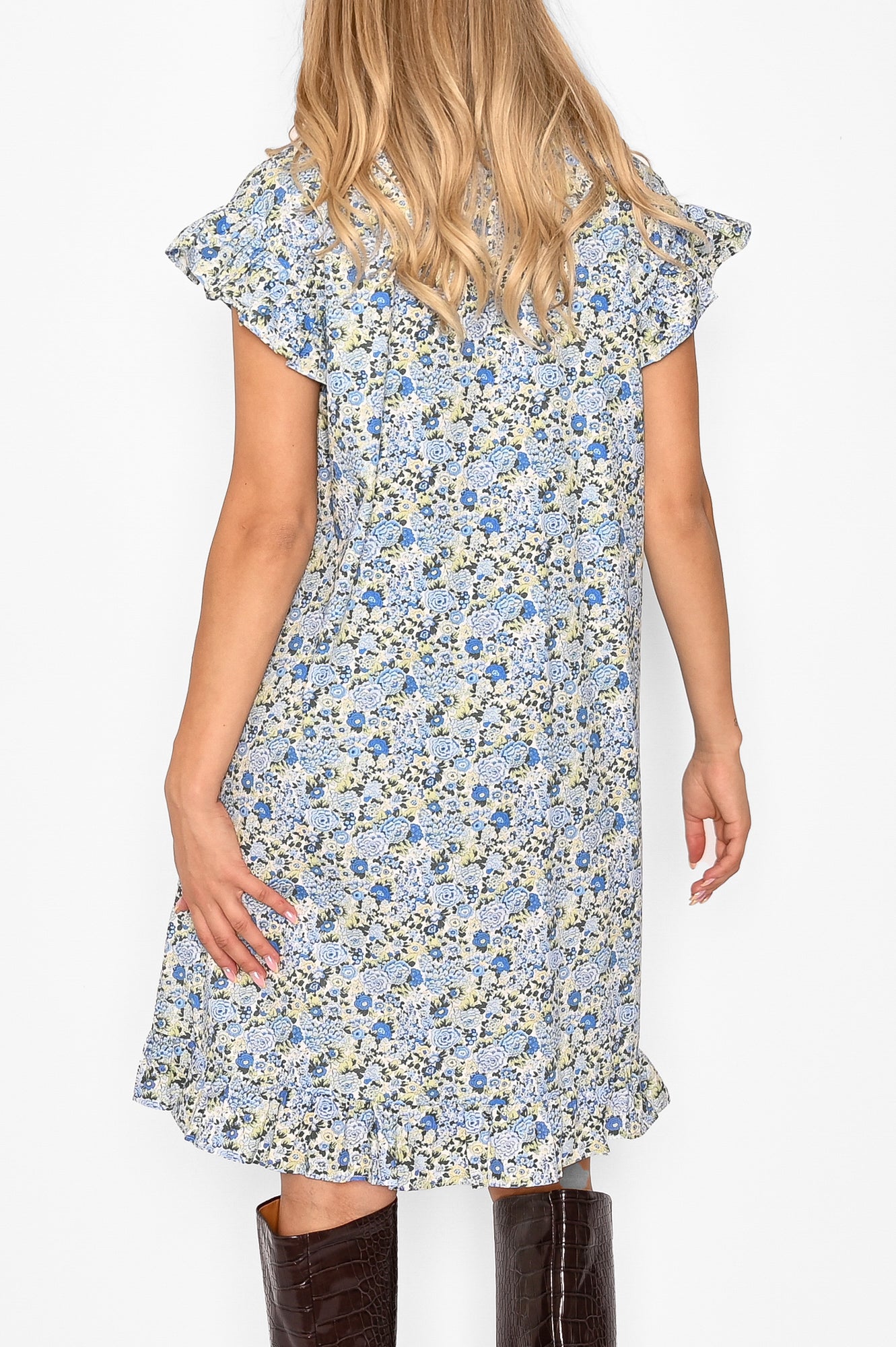 Stylenavn: Sally Dress Blue/Yellow Flower